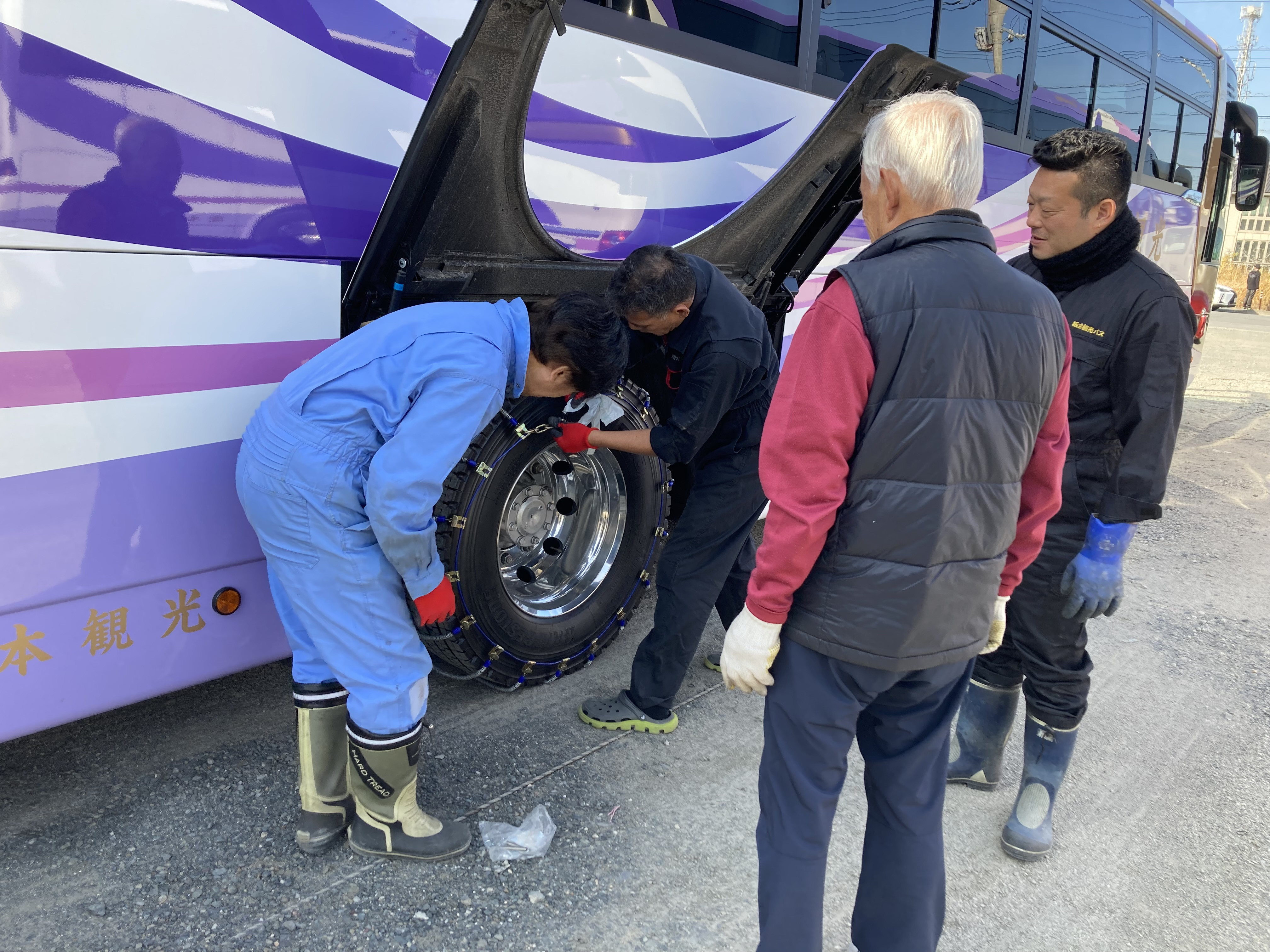 ◆チェーンの装着、非常用具等の位置確認、使用方法。